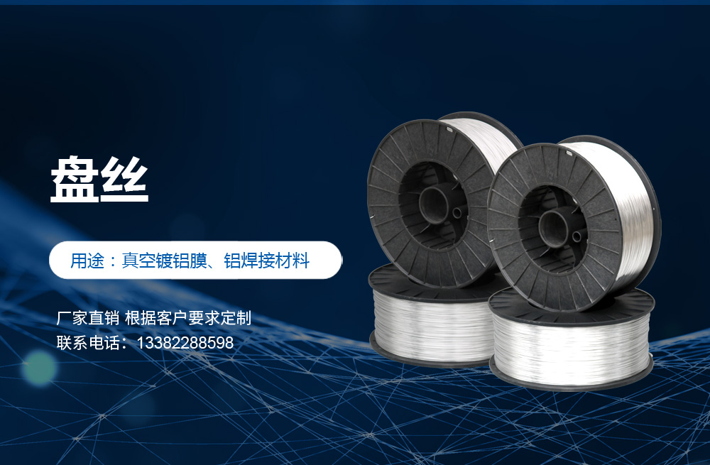 高純度鋁絲:公司主打產(chǎn)品。SGS認(rèn)證產(chǎn)品,適用于真空鍍鋁。純度99.9%,可為客戶量身定做生產(chǎn)的各盤裝鋁絲、鋁直條。產(chǎn)品應(yīng)用領(lǐng)域十分廣泛,如:真空鍍鋁膜、電器儀表、電子、家電業(yè)、電線電纜業(yè)、建筑裝飾業(yè)、五金裝飾業(yè)、IT電腦業(yè)、廣告裝飾業(yè)、醫(yī)療器械、工藝制品、防腐制品(大型港口、橋梁、碼頭)、食品包裝容器、紡織服裝等。